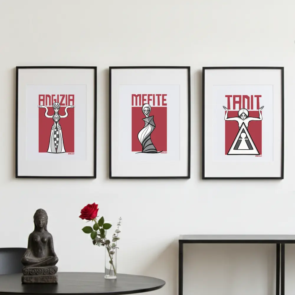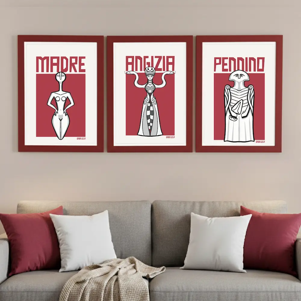 La serie “Radici” nasce dal desiderio di riconnettersi con il patrimonio spirituale e iconografico dell’Italia più antica. Non sono semplici illustrazioni, ma frammenti di storia che celebrano divinità, statue e simboli che hanno abitato le nostre terre molto prima della modernità.