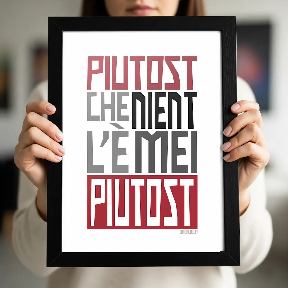 il detto dialettale che racchiude una verità antica o il motto che meglio descrive la tua terra in un poster personalizzato: inviaci il tuo proverbio preferito e noi lo trasformeremo in un oggetto d’arredo moderno.